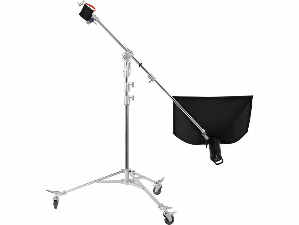 Завдяки противазі цей пристрій легко працює з важким освітленням, великими камерами, мікрофонами та софтбоксами. Конструкція залишається стабільною навіть при максимальному виносі штанги.